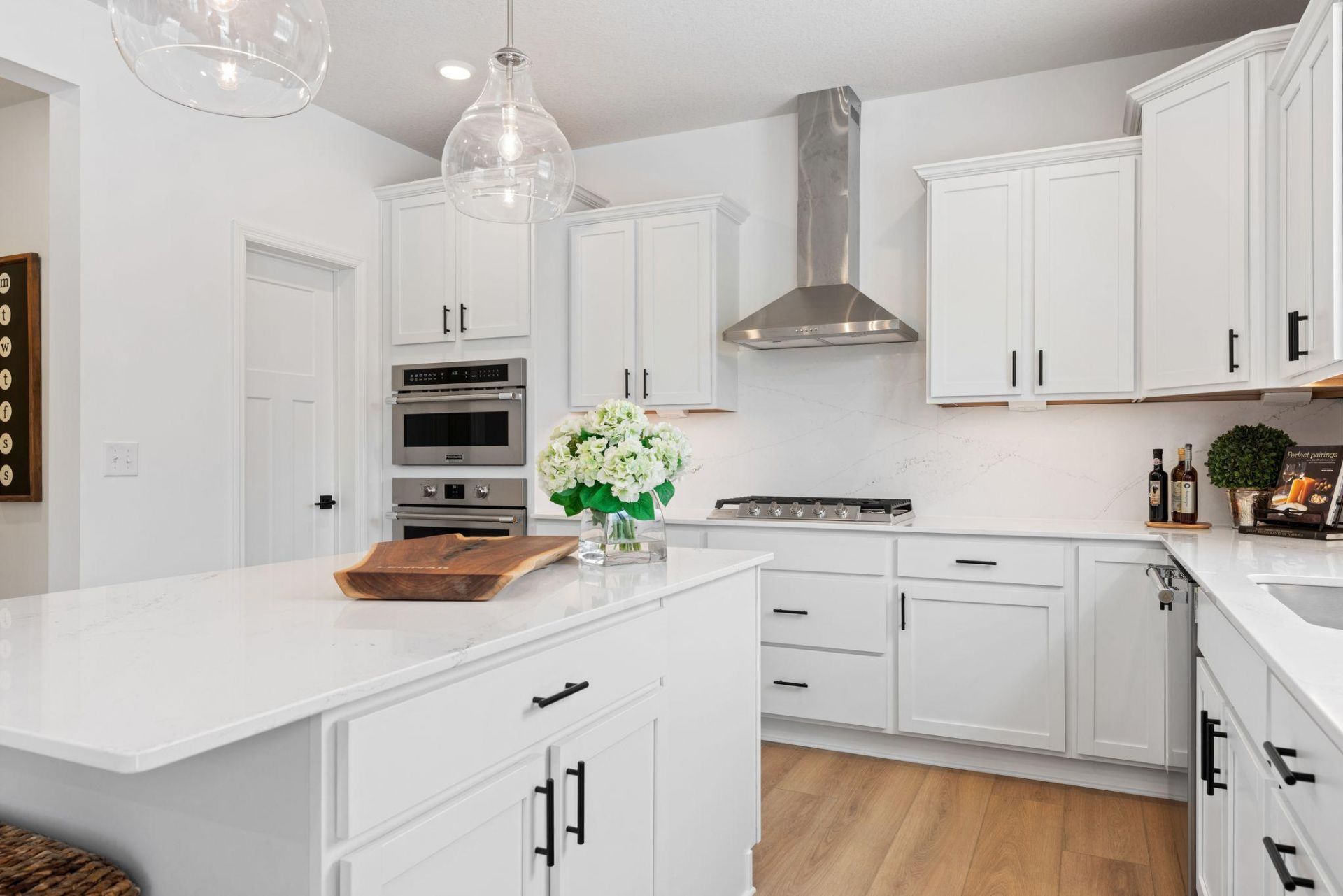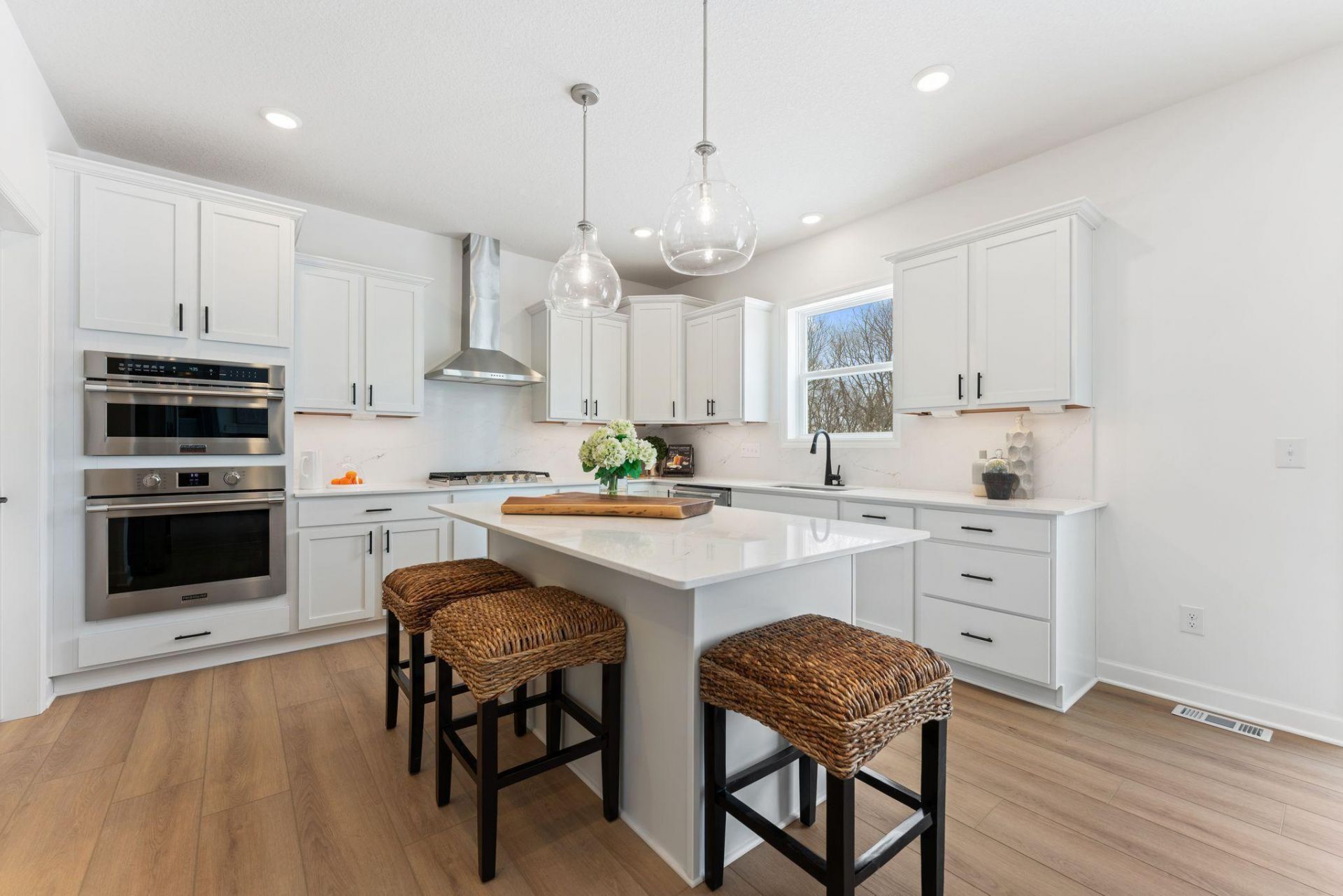 This home is complete and ready for move-in! Welcome to Timber Creek, where the elegant Lewis floor plan combines spacious, modern living with a prime location. This 5-bedroom, 3-bath home is just minutes from Hwy 212 and I-494, with an elementary school within walking distance. The open-concept main level features a bright Great Room anchored by a cozy gas fireplace, a gourmet kitchen with quartz countertops, soft-close cabinetry, designer backsplash, stainless steel appliances, a walk-in pantry, and an oversized square island, as well as a main-level guest suite, spacious mudroom, and additional storage. Upstairs, four bedrooms await, including a luxurious owner's suite with a spa-inspired bath, a versatile loft, and convenient laundry. The unfinished walkout basement offers endless possibilities for future expansion, while the fully sodded yard with irrigation and landscaping completes this move-in-ready home. Experience comfort, style, and functionality in the heart of Timber Creek.